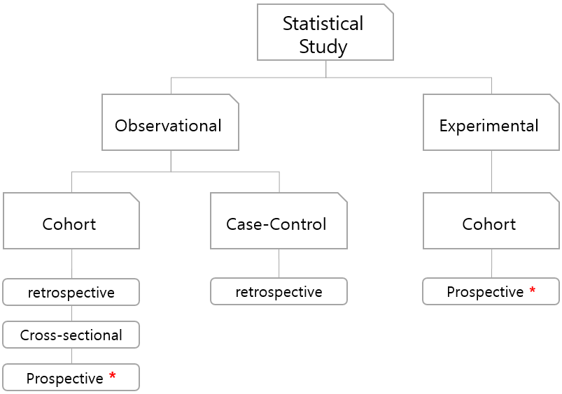 Statistical study에서 Prospective cohort study를 longitudinal study로 볼 수 있으며, 보통 우리가 말하는 것은 Obervational longitudinal data를 의미한다. (i.e. Y(outcome)이 하나임).